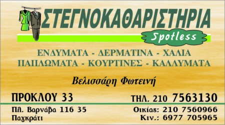 • Στεγνοκαθαριστηρια Δειγματα επαγγελματικων καρτων